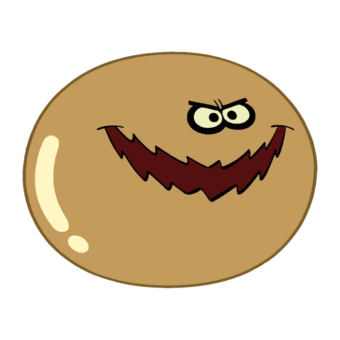 Ele é uma bolha marrom com dois olhos grandes e uma boca afiada por dentro com uma marrom escuro. Como limpo ele fica com uma cara de amigável a boca dele fica normal e agora tem dentes e ele fica todo azul.
